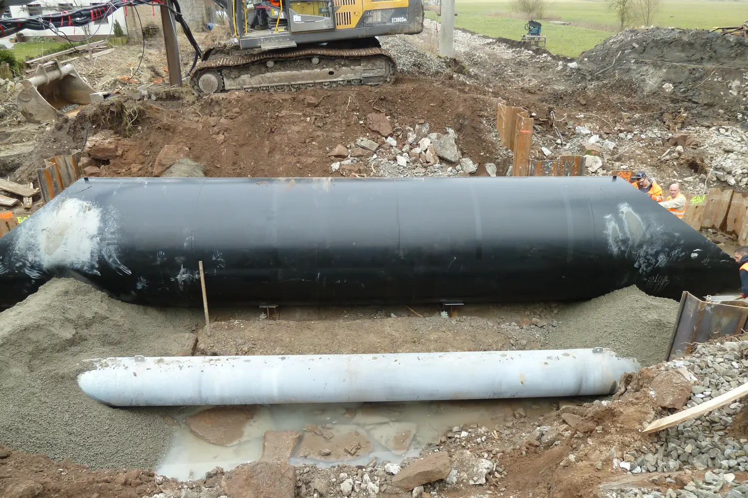 Der Ersatzneubau wurde in Abstimmung mit dem Auftraggeber als Stahlrohr, vorgefertigt aus geschweißten Stahlblechen geplant.