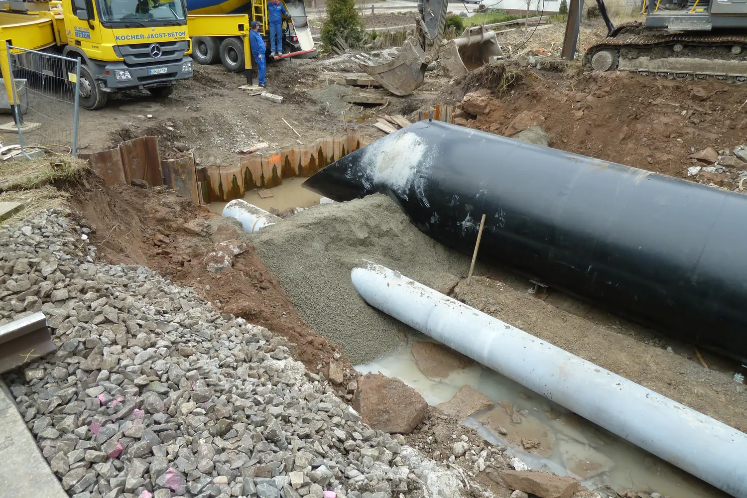 Als anspruchsvoll erwiesen sich die Bauzustände, im Besonderen durch die von der Jagst verursachten Hochwasserstände im Mühlkanal sowie die Durchleitung eines Regenwasserkanals im Bauzustand.