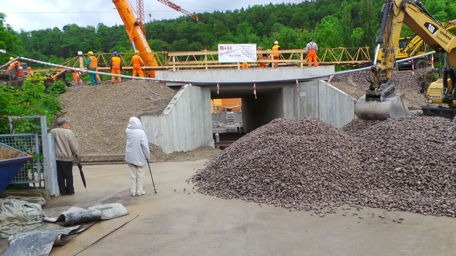 Die neue EÜ sollte mit gleicher Durchfahrtshöhe und -breite auf einer Herstellfläche neben der Bahnstrecke als Stahlbetonhalbrahmen wieder hergestellt und anschließend eingeschoben werden.