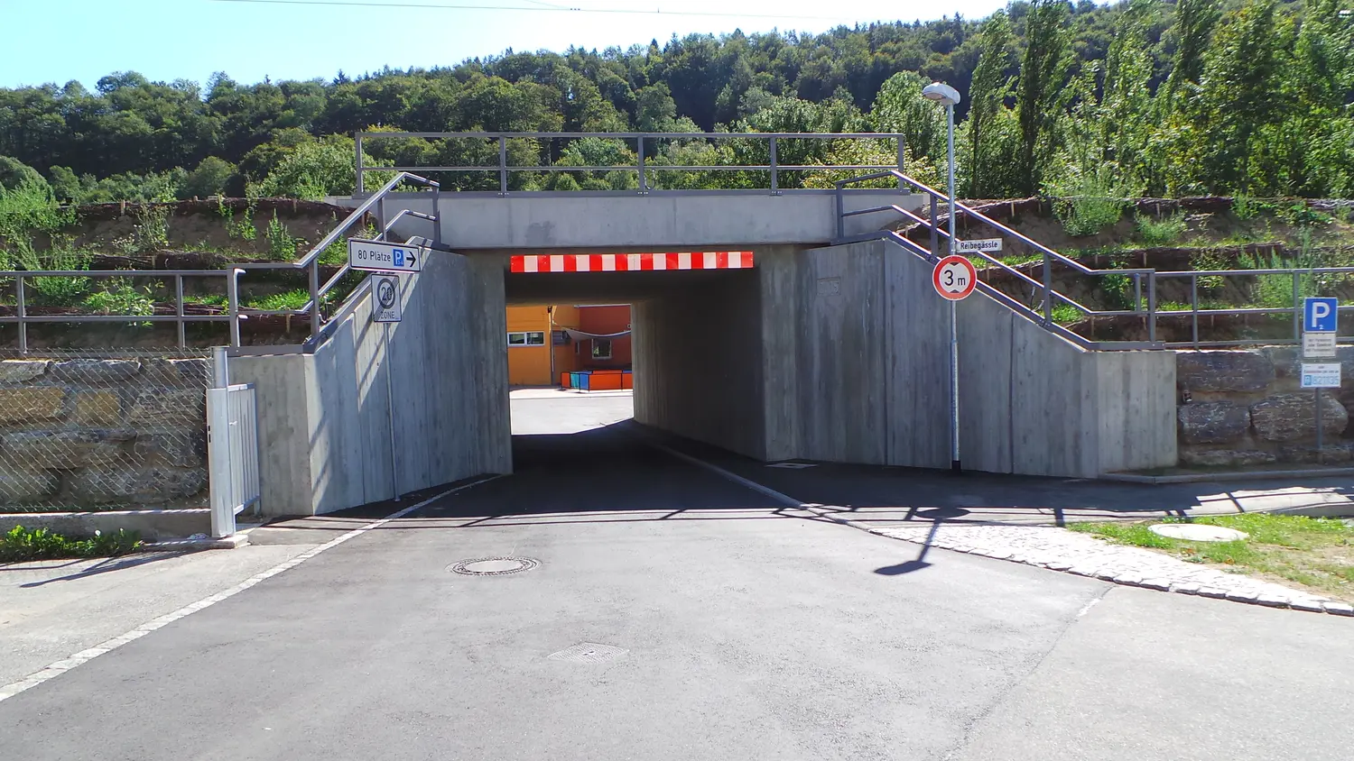 Die alte Eisenbahnüberführung in Horb am Ortsweg Reibegäßle wurde im Jahr 1906 mit einer Stützweite von 4,50m, einer lichten Weite von 4,00m und einer Breite von 11,87m gebaut. Der Überbau mit 11,68m war in WIB-Bauweise (Walzträger in Beton) ausgebildet. Die massiven Widerlager aus Beton/Stahlbeton wurden auf flachgegründete Fundamentplatten gesetzt. Die vorhandene EÜ wies Schäden auf, welche die Erneuerung des Bauwerks erforderten.