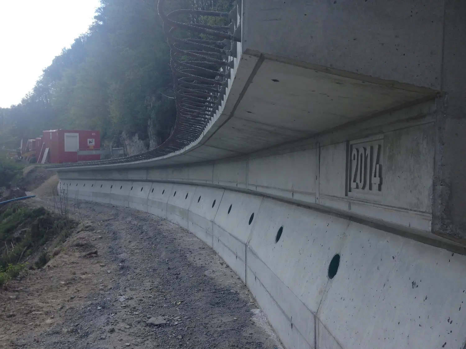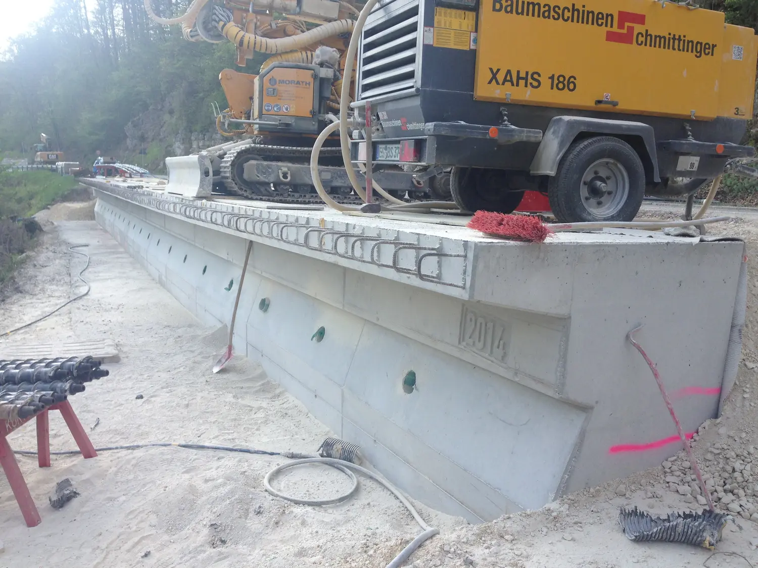 Früher wurden talseitig Pfähle mittels Verpresslanzen hergestellt, die zum damaligen Zeitpunkt teilweise frei lagen.