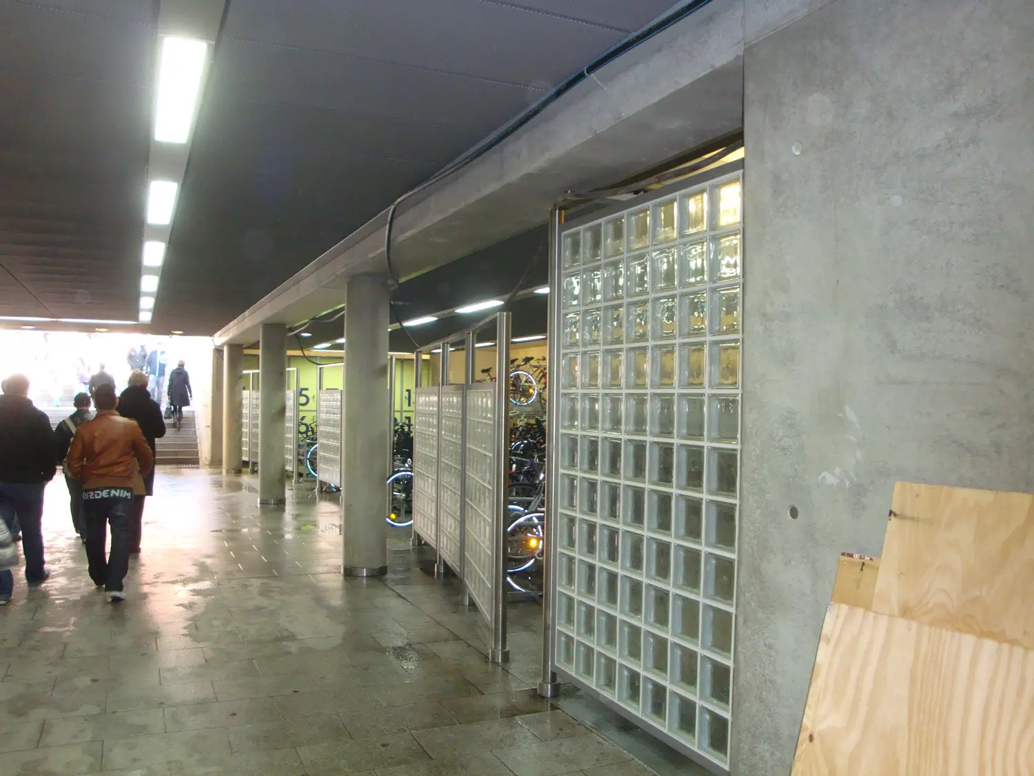 Hinsichtlich der Gestaltung des neuen stadtseitigen Zugangs zu den Bahnsteigen wurde die Funktionalität der Fußgängerunterführung durch eine integrierte Fahrradabstellanlage und einen SB-Service Bereich mit Schließfächern und Fahrscheinautomaten gestaltet.